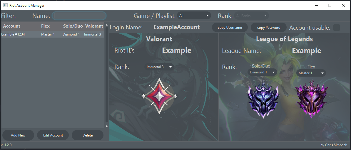 A managing tool to keep track of all your League and Valorant Accounts and their Ranks.
